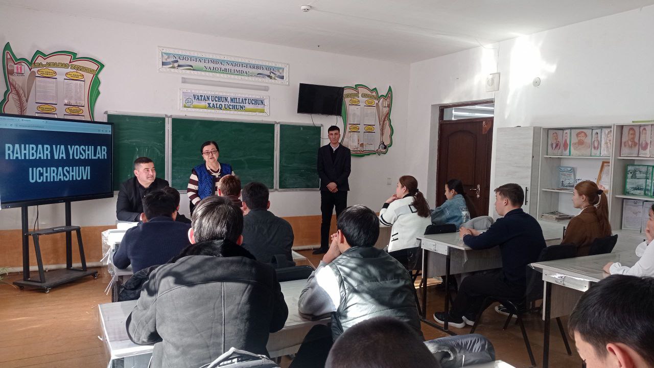 Шунингдек, ўқувчиларга Ўзбекистон Республикаси Президентининг 2025 йил 3 ноябрдаги “Ахоли саломатлиги ва миллат генофондини гиёҳвандлик ва наркожиноятлардан самарали ҳимоя қилиш бўйича коиплекс чора тадбирлар” тўғрисидаги Фармони ҳамда 2026 йил 3 мартдаги “Аёллар ва болалар ҳуқуқларининг ҳимоясини кучайтириш ҳамда уларга нисбатан тазйиқ ва зўравонлик холатларининг олдини олиш бўйича қўшимча ташкилий-ҳуқуқий чоралар тўғрисида”ги ПФ-33-сонли Фармонлари, Ўзбекистон-2030 стратегиясининг мақсадлари мазмун-моҳияти юзасидан тушунтиришлар берилди.